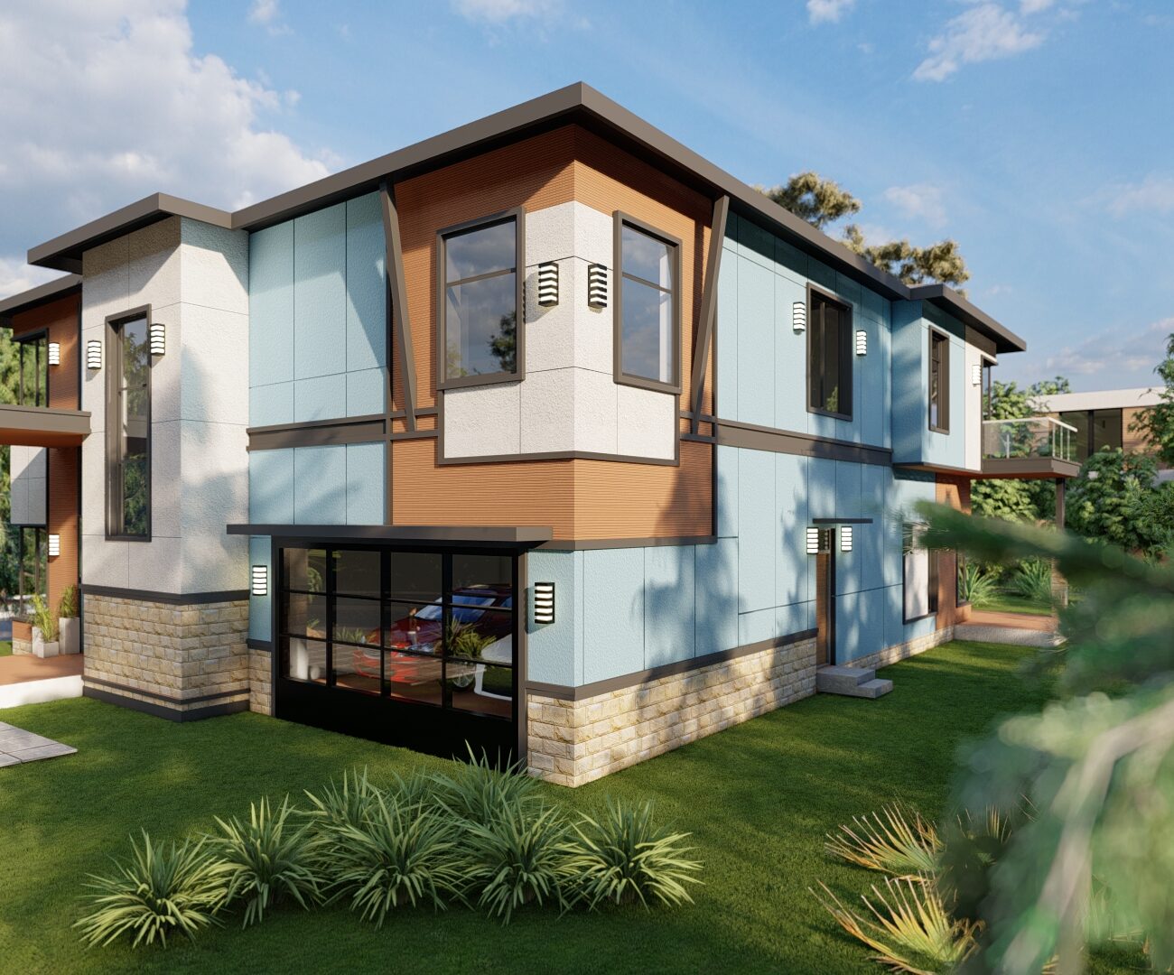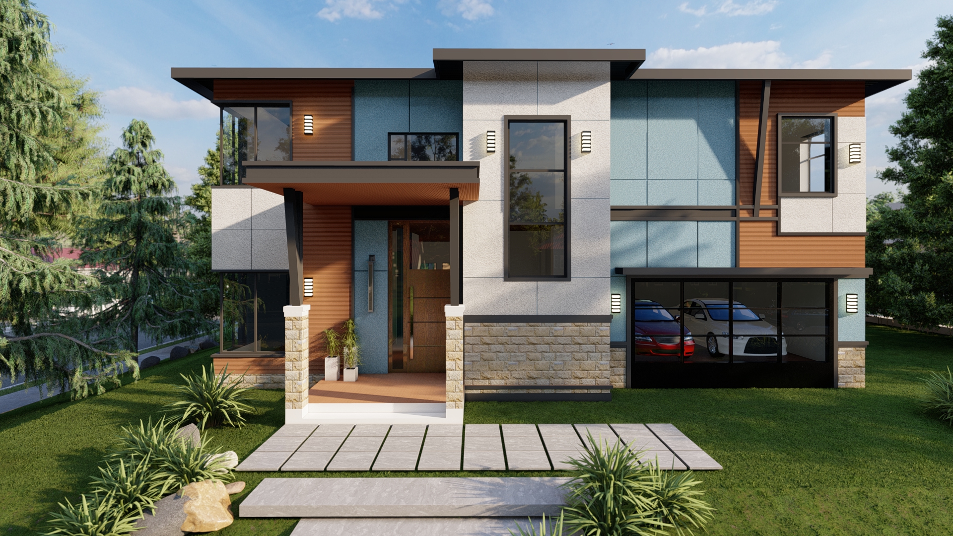Situated in Redmond, this 2-storey modern residence features a traditional sloping roof on a 9,375 sq. ft. lot. With 4,875 sq. ft. of space, it includes a 3-car garage, 6 spacious bedrooms with lantern corner windows, and a vibrant design that stands out in the community. The entrance porch leads to a double-height lobby, opening to an inviting layout with a kitchen, dining, and family space.