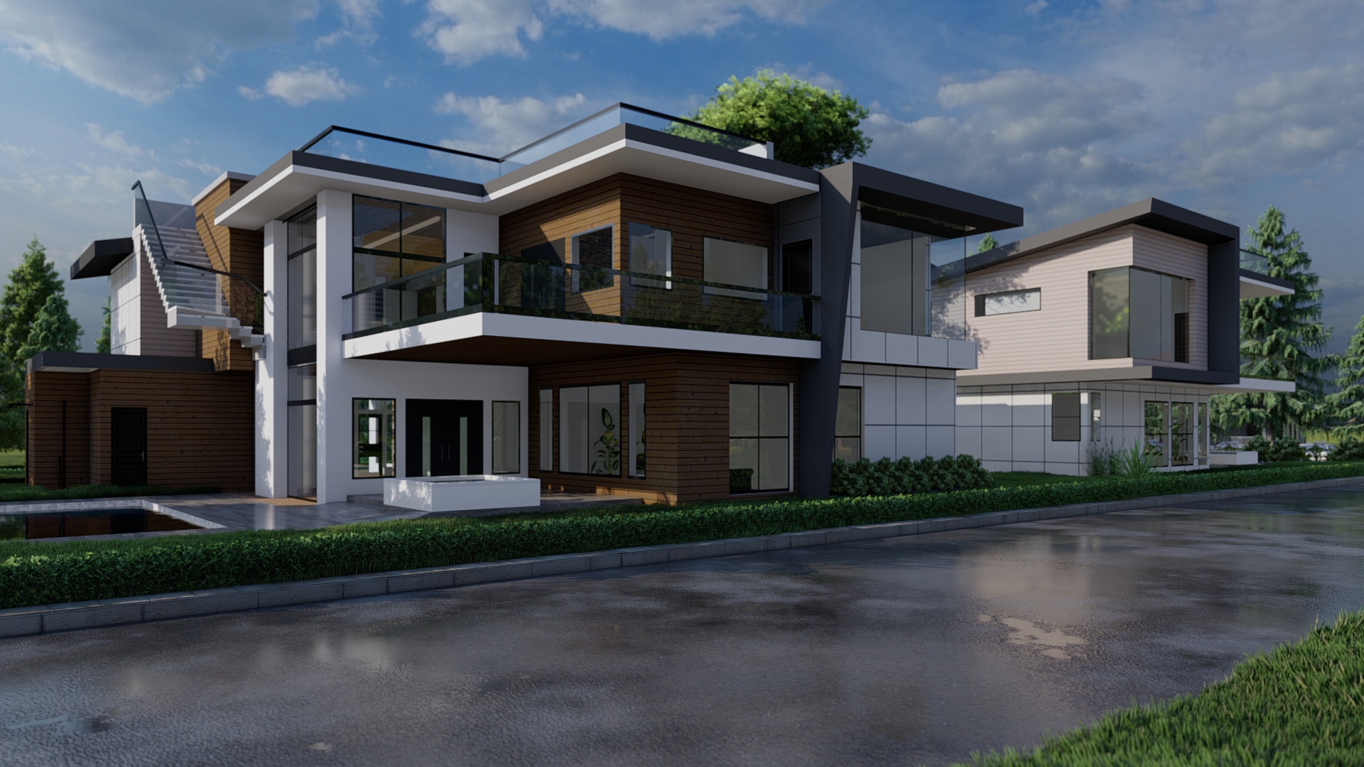 The design emphasizes luxurious vacation living, combining functional layouts with stylish outdoor spaces and unique exterior facades that set each villa apart while maintaining the overall harmony of the community.